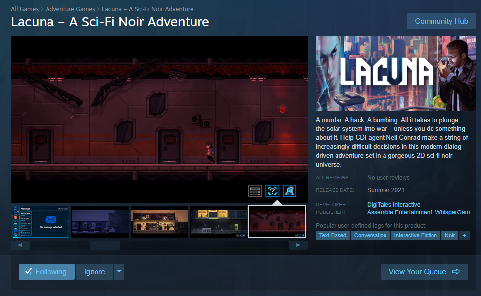 Lacuna was released on Steam and GOG. Within a few weeks, it managed to rack up hundreds of raving reviews from all around the world.